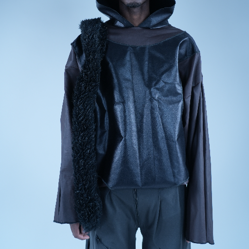 Baggy brown and black fake leather hoodie —