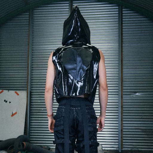 Baggy brown and black fake leather hoodie —