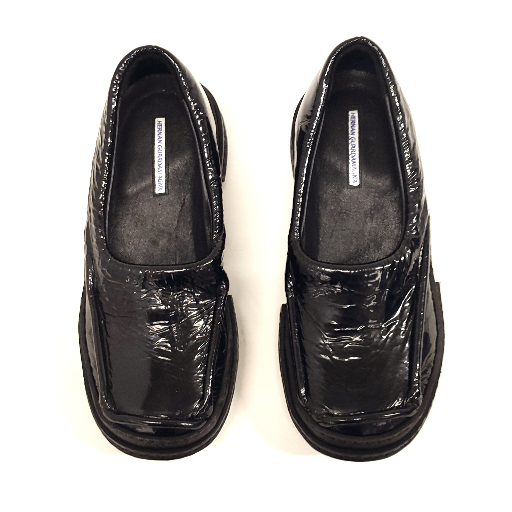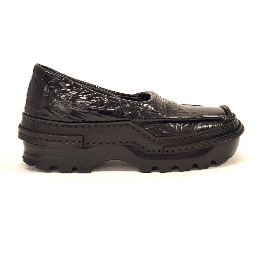 BLACK MOCCASINS IN UPCYCLED PATENT LEATHER