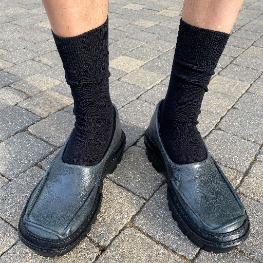 BLACK MATTE MOCCASINS IN UPCYCLED LEATHER