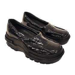 BLACK MOCCASINS IN UPCYCLED PATENT LEATHER